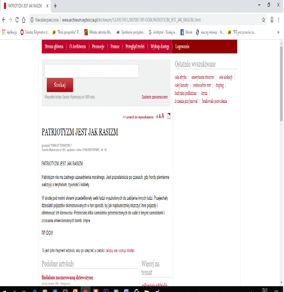 7) http://www.archiwum.wyborcza.pl/Archiwum/1,0,4927451,20070817RP-DGW,PATRIOTYZM_JEST_JAK_RASIZM,.html